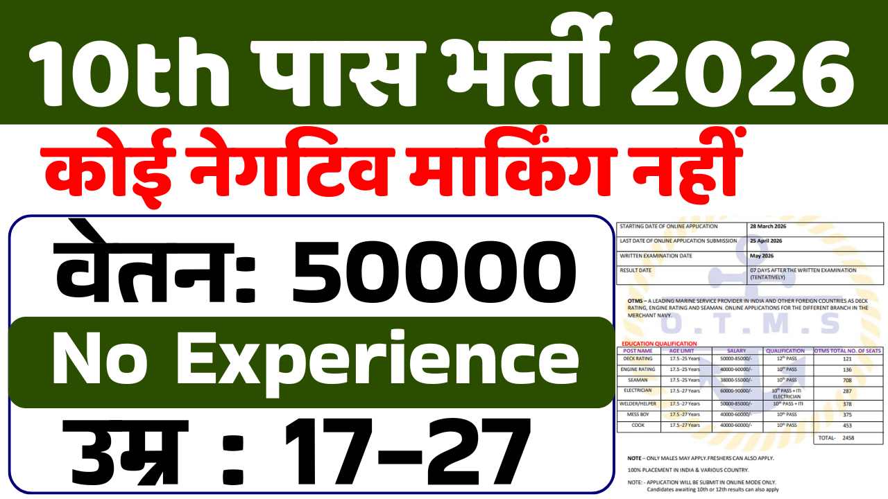 मर्चेंट नेवी में शानदार करियर का मौका, 10th Pass Recruitment 2026